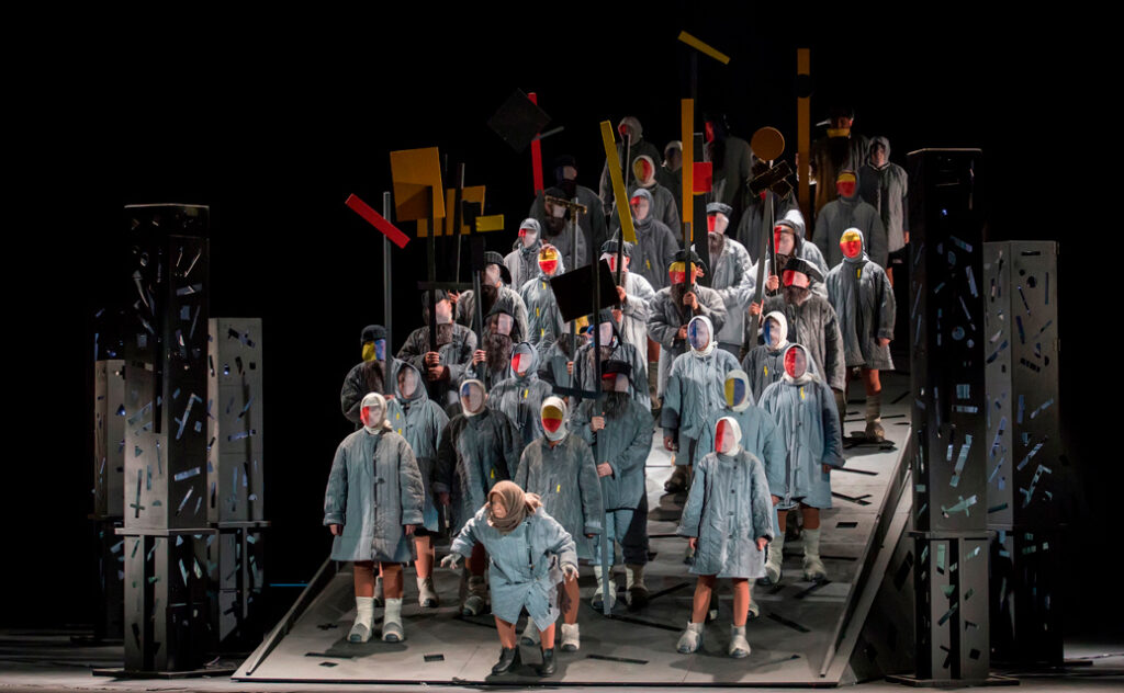 Не менее впечатляюща музыка Глеба Седельникова – необычная, яркая, острохарактерная. В ней поражают колоссальная внутренняя наполненность и мощь звучания хора, сочетание гармонии и авангарда: от православного хорала до почти революционного рэпа с плакатными призывами.