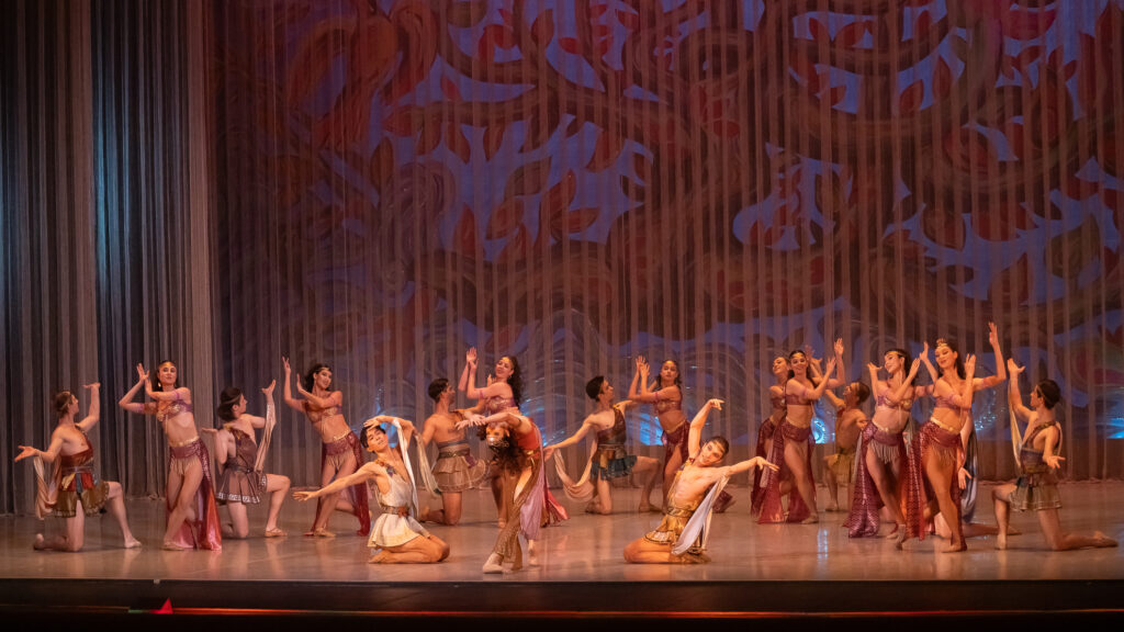 В программе гала-концерта: известные хореографические номера «Умирающий лебедь» на музыку К.Сен-Санса, «Половецкие пляски» А.Бородина, а также самые впечатляющие сцены из балетов «Шехеразада» на музыку Н.Римского-Корсакова, «Шопениана» на фортепианные произведения Фредерика Шопена, «Видение Розы» на муз. К.Вебера, «Жар-птица» И.Стравинского, «Египетские ночи» на музыку А.Аренского и др.